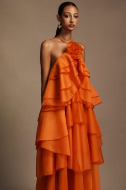Jesmin Sleeveless Flower Layered Folds Maxi Dress