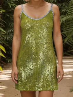 Sparkling sequins, spaghetti straps and sleeveless; Summer dresses for women; Beach dresses for women, mini length design, make your legs longer and slimmer